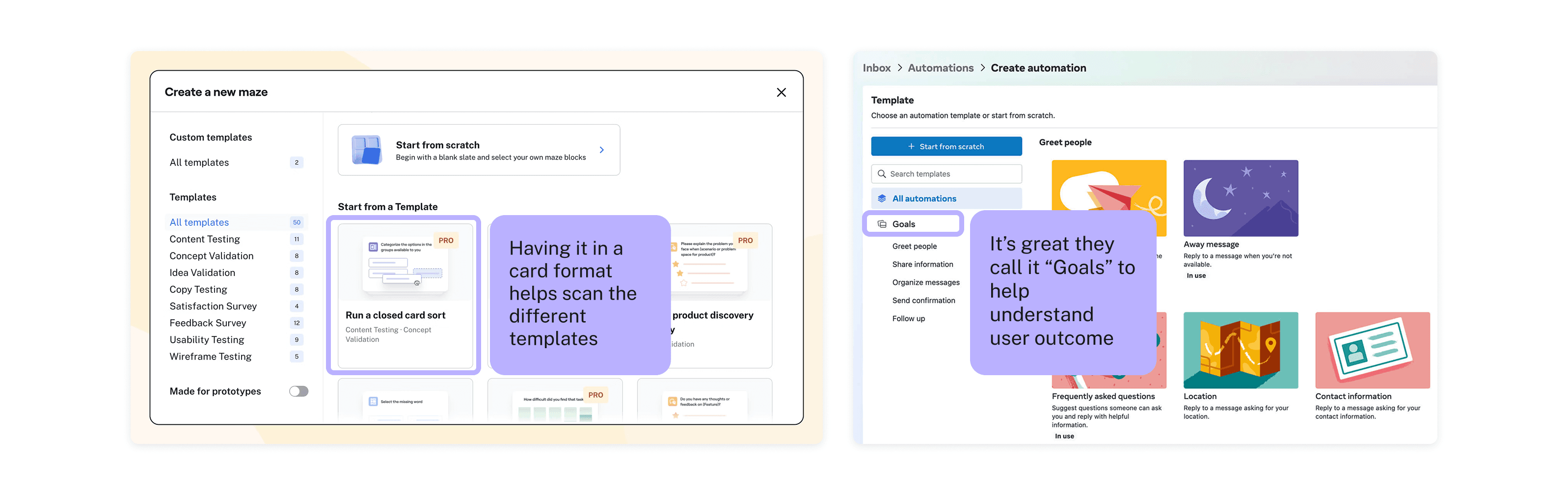 Admins weren’t struggling to understand how templates worked, they struggled to find the right one fast enough as the library grew.