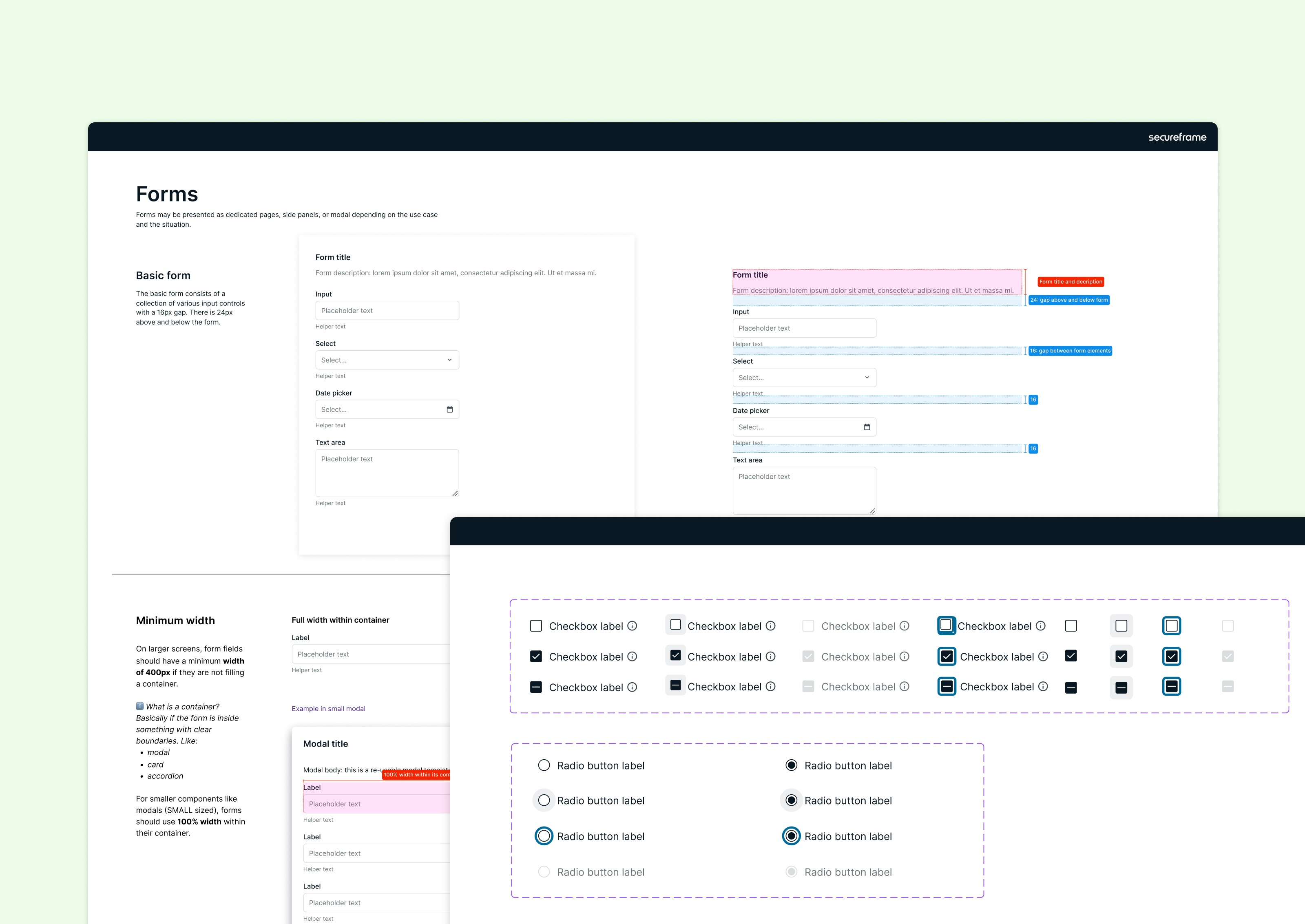 Beyond the component migration, I updated the Figma guidelines with "gold standard" form examples so other designers had a clear reference. My peer designer designed the focus states alongside me, starting the accessibility foundation (keyboard nav, consistent focus rings across every form component).