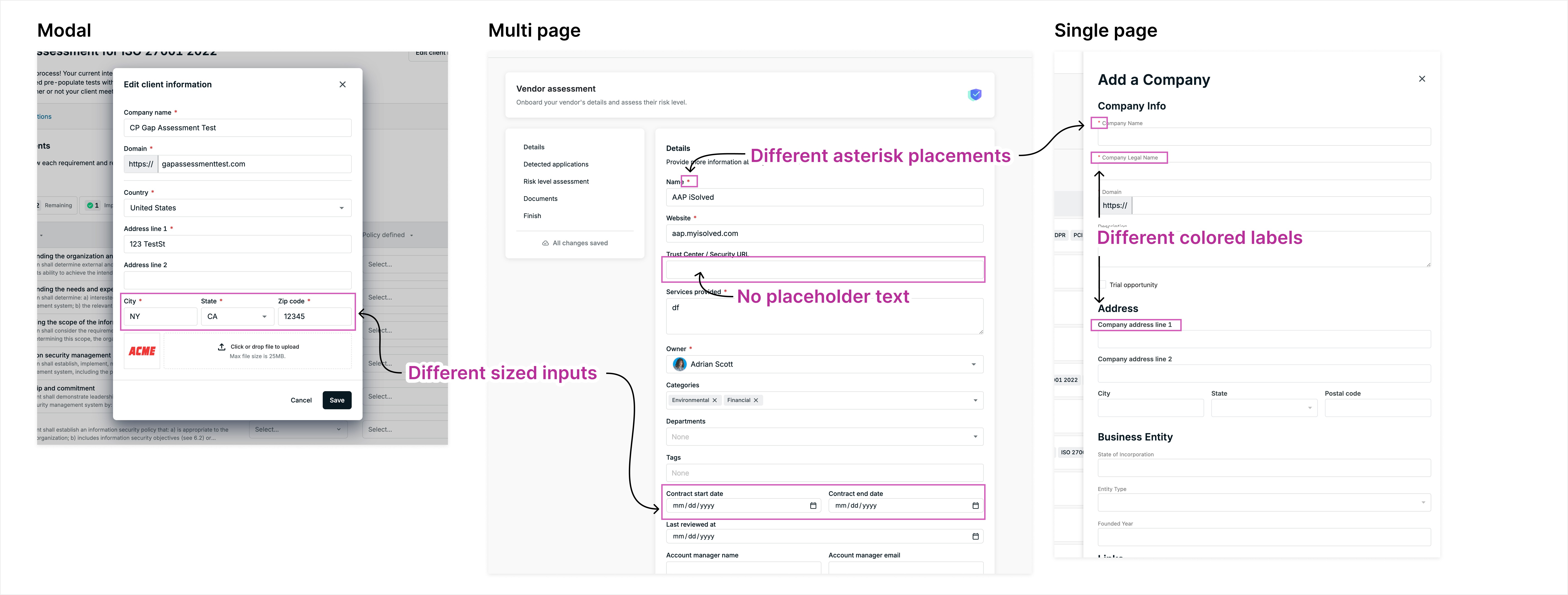 Standardized form system — layout, required fields, date inputs, validation patterns (I spec'd and coordinated)