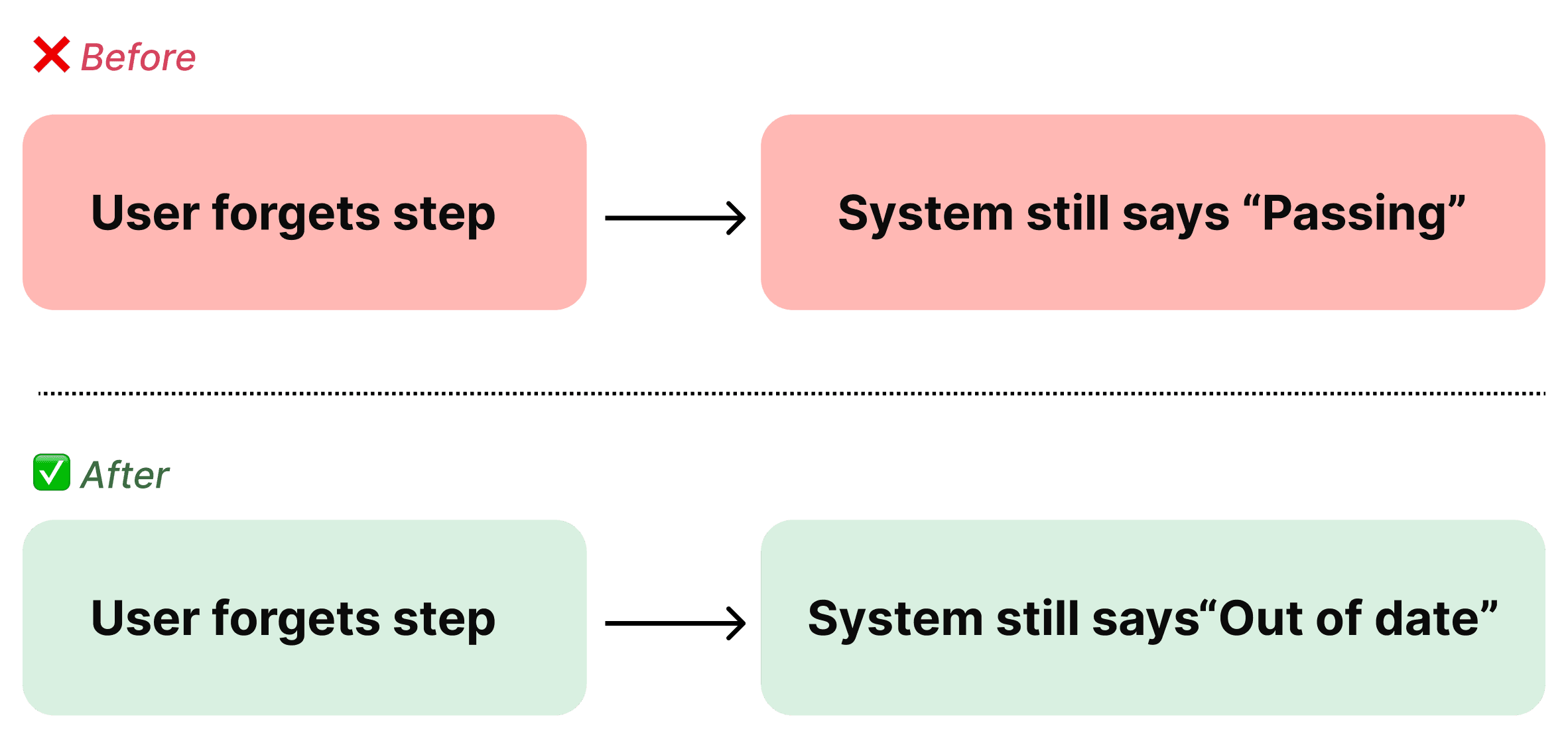 A system that communicates status must be correct by default — even when users forget steps or make mistakes