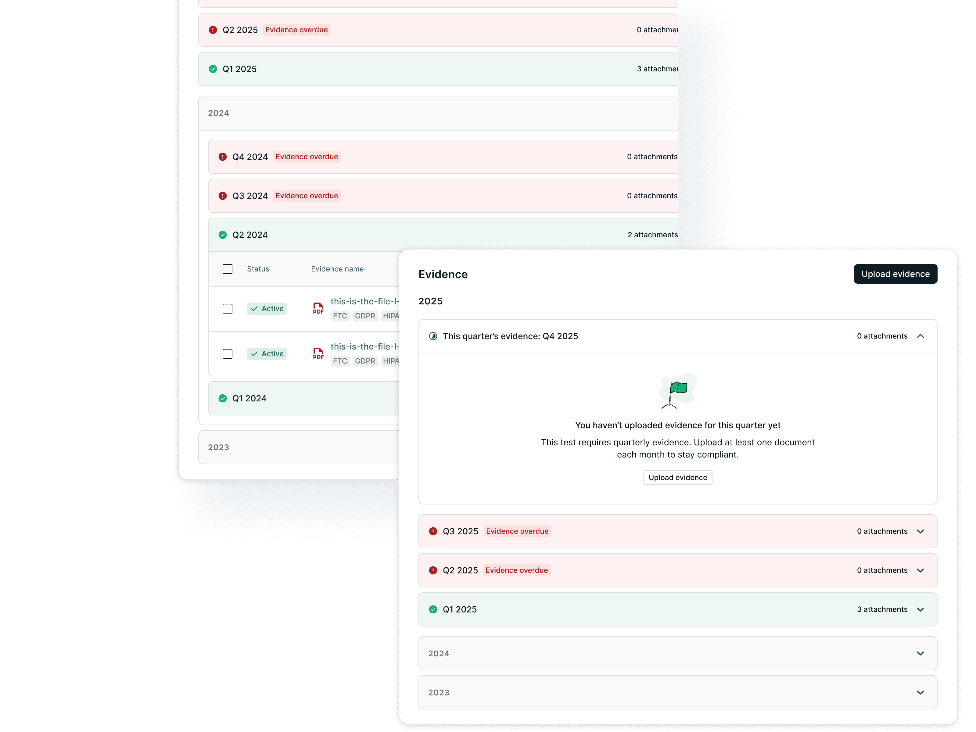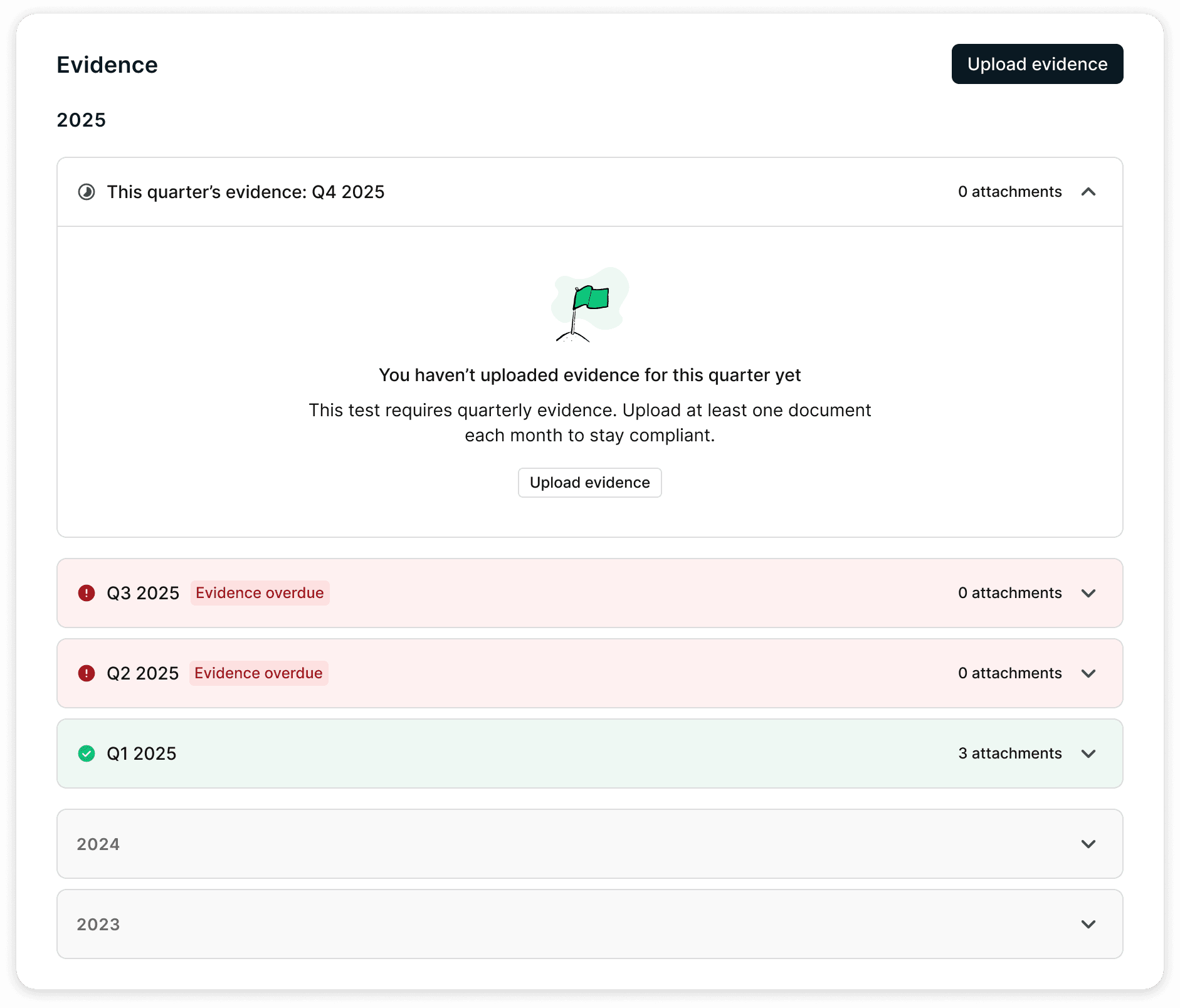 If a customer uploaded evidence without setting an expiration, the test never expired.