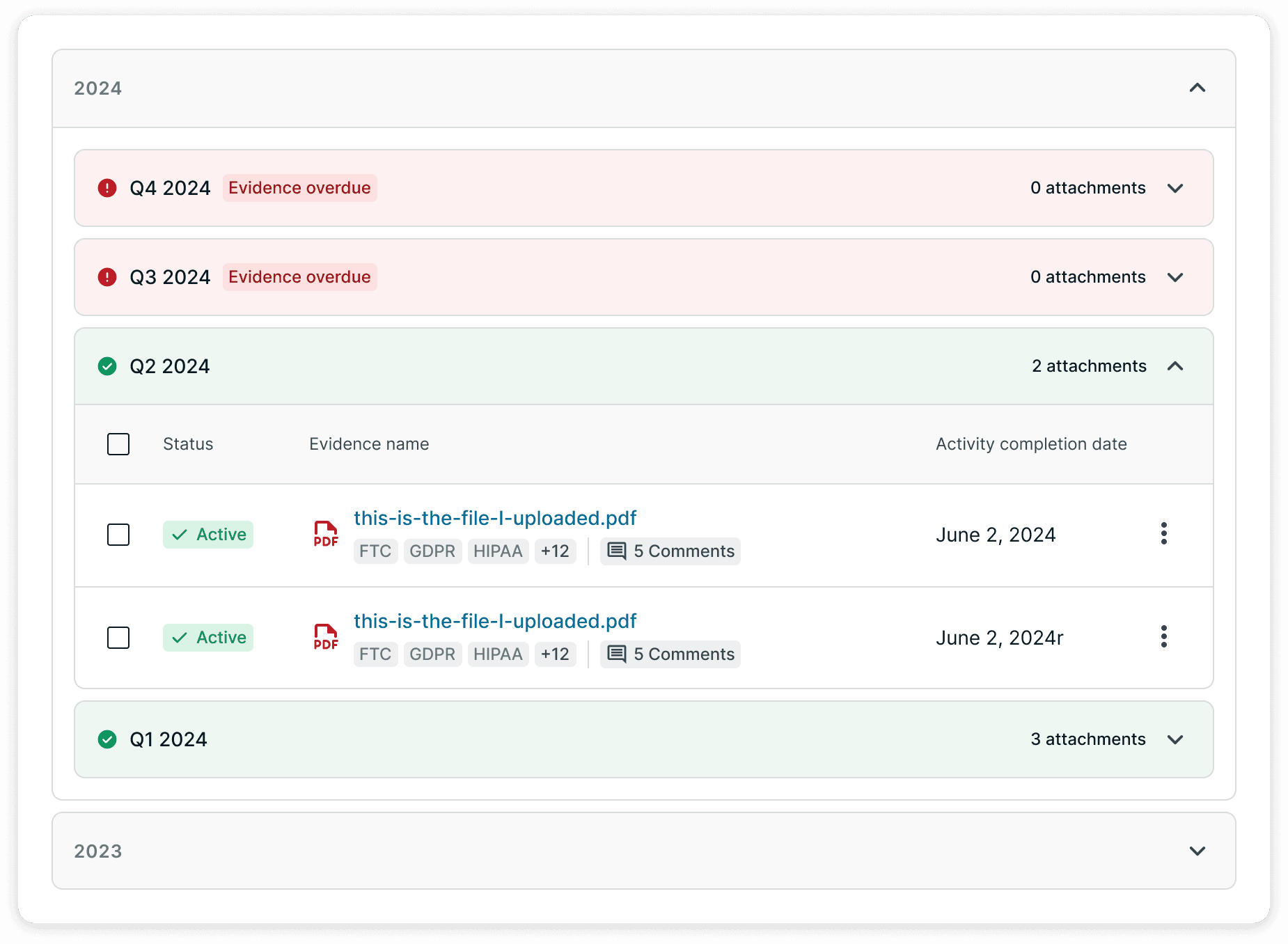 Secureframe tracks compliance through tests that rely on uploaded proof. For many of these tests, validity depends on when the activity happened, not when evidence was uploaded.