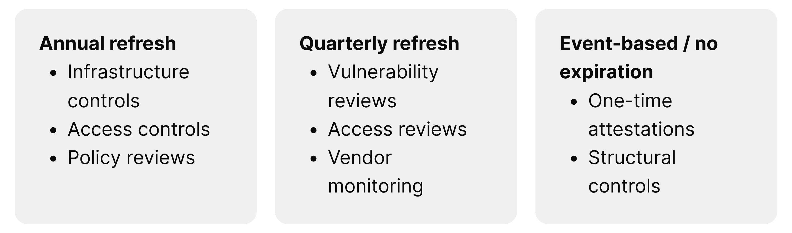Default intervals were defined in partnership with compliance to reflect real-world risk and audit expectations.